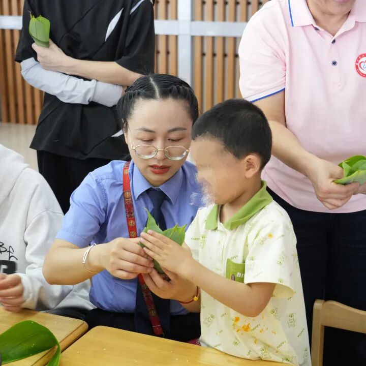 在关怀互动环节,精彩不断上演。在社工及其他工作人员的悉心指导下,涉罪未成年人与福利院儿童迅速熟络起来,携手合作,共同包制象征端午团圆的粽子。一双双稚嫩的小手,在糯米与粽叶间穿梭,欢声笑语回荡在活动现场。随后,孩子们互赠亲手完成的手工作品,每一份作品都饱含着真诚与祝福。这简单而温馨的协作过程,成为打破隔阂、建立信任的桥梁,让不同经历的孩子们的心紧紧相连。