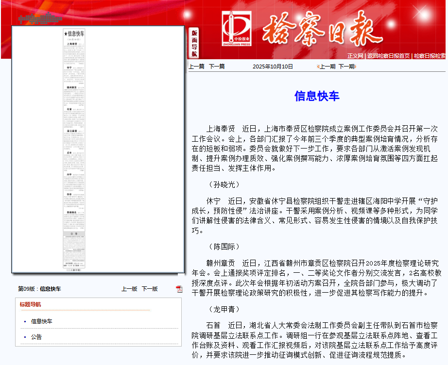 《检察日报》信息快车刊登龙甲青《赣州章贡:召开理论年会提升研究能力》