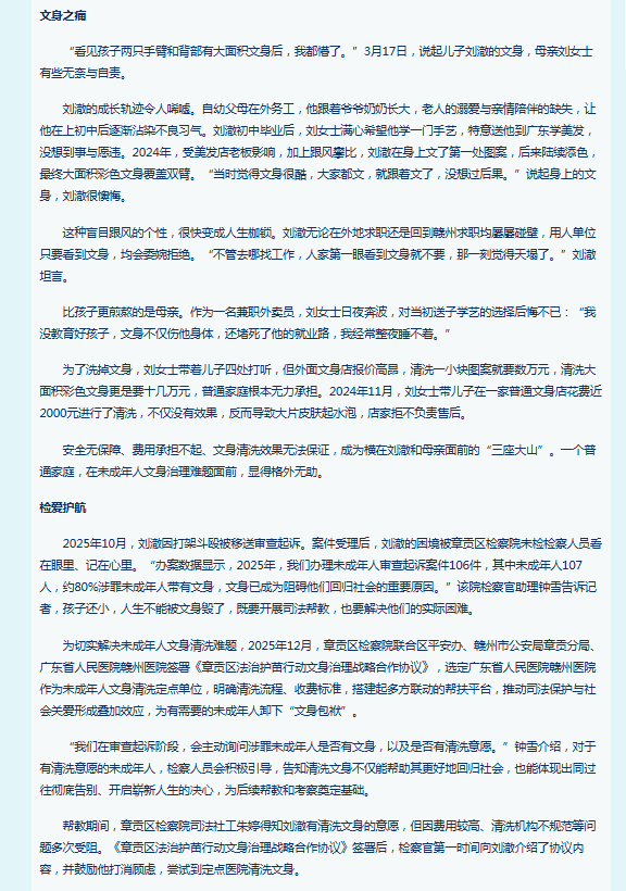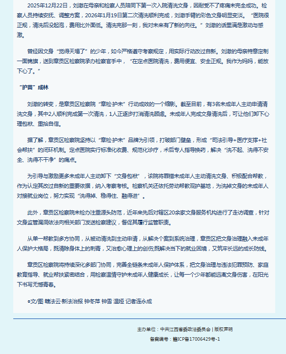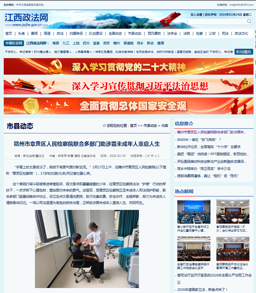 江西政法网刊登钟冬萍、钟雪《赣州市章贡区人民检察院联合多部门助涉罪未成年人重启人生》