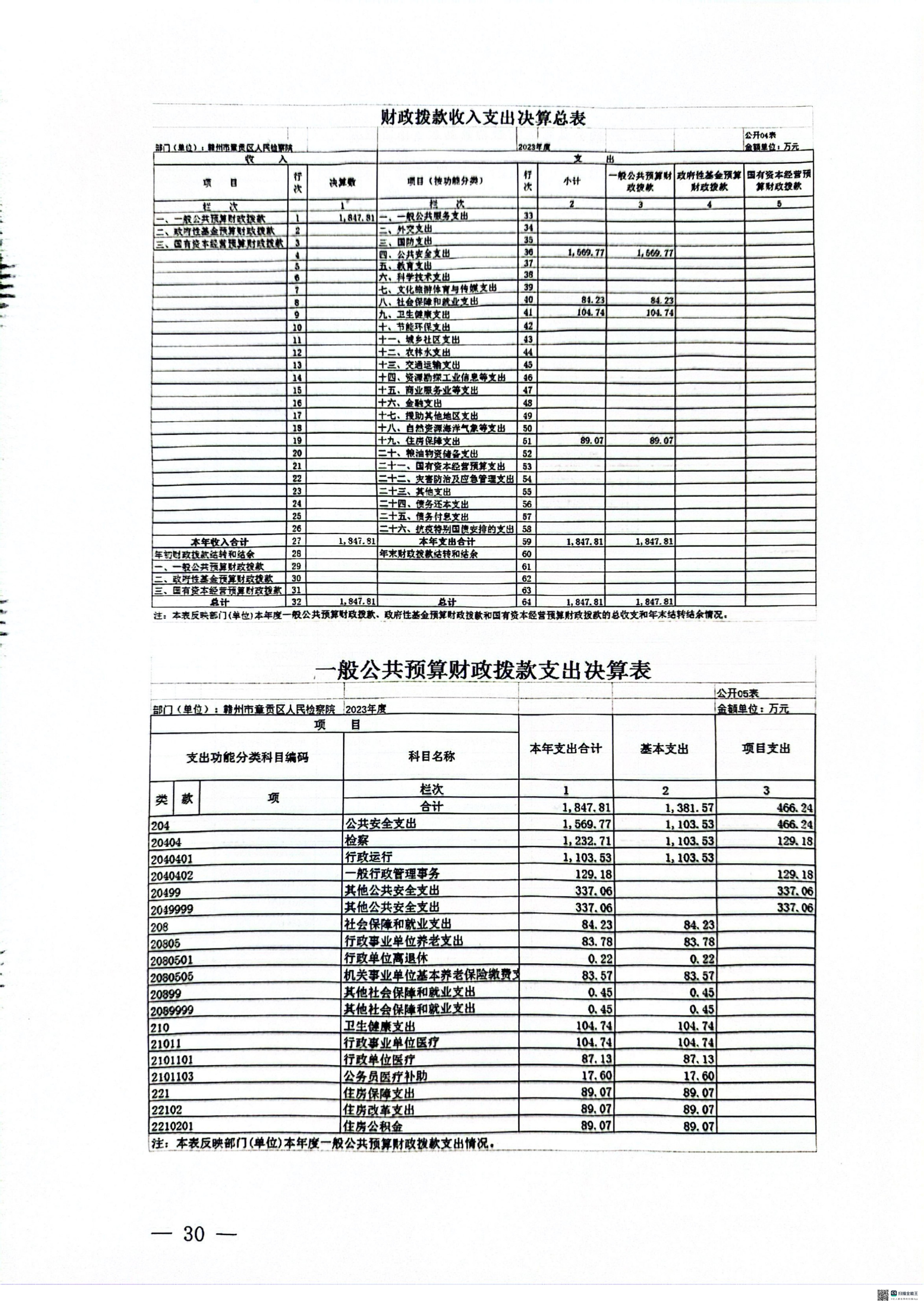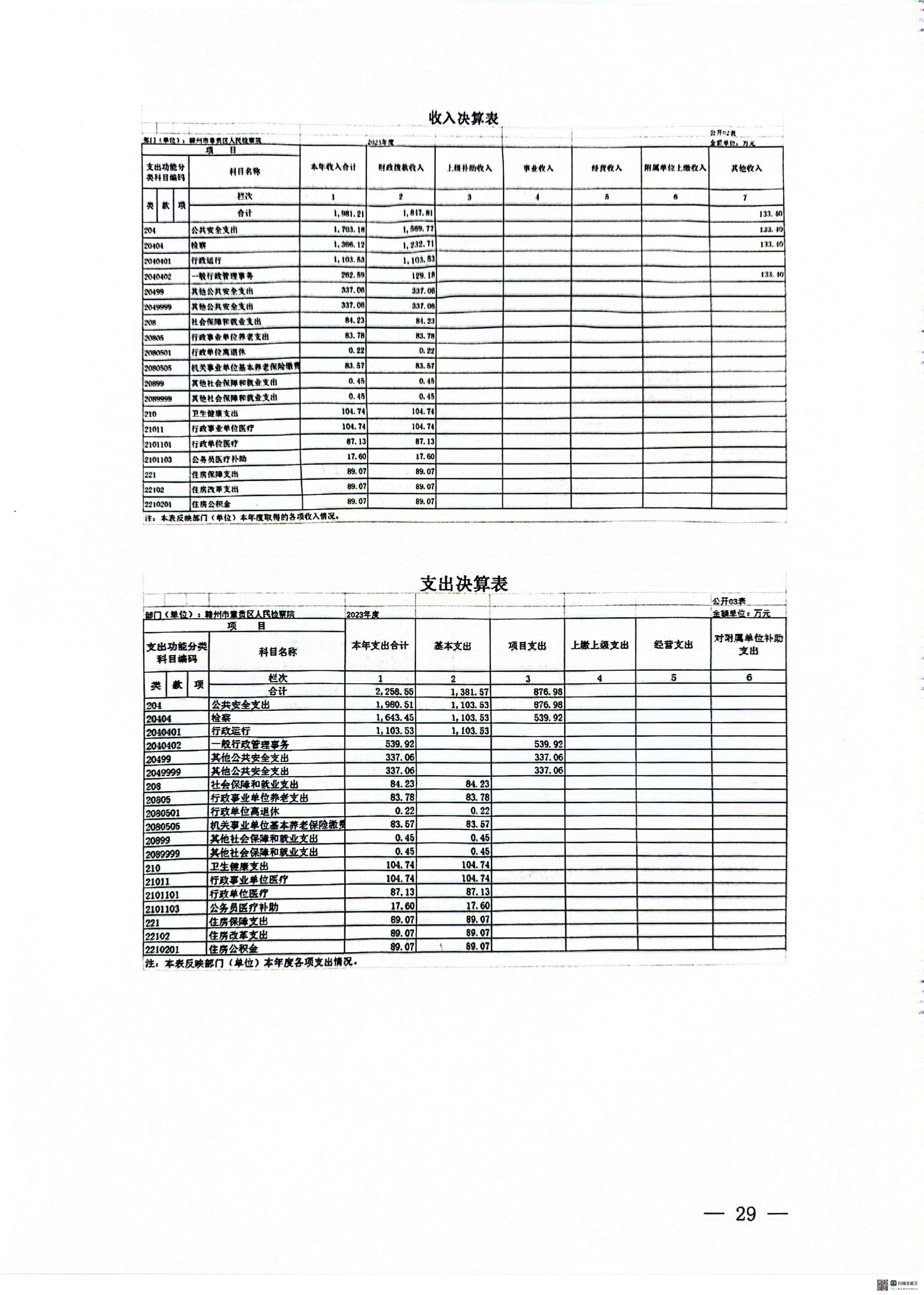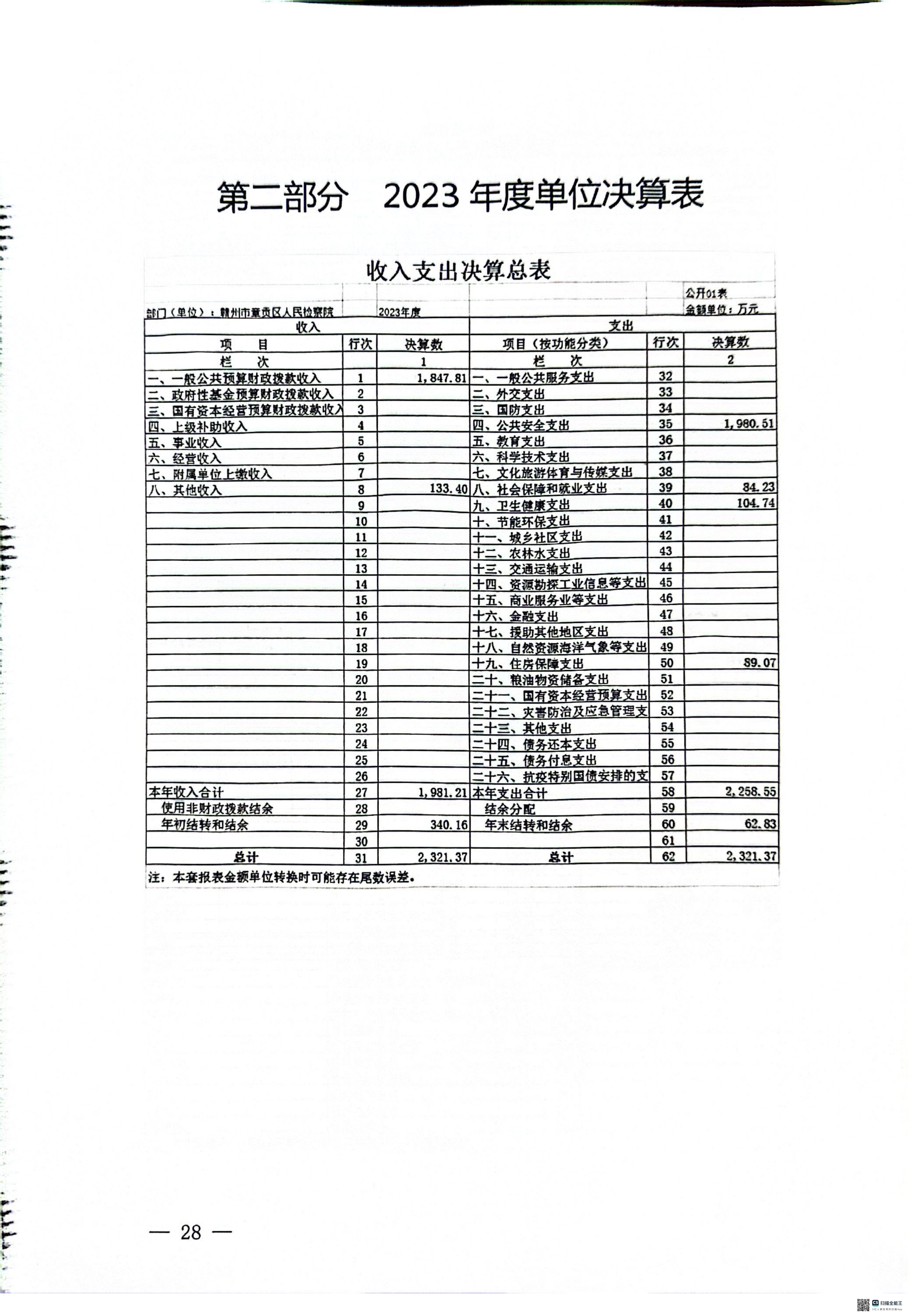 2023年度章贡区人民检察院单位决算公开