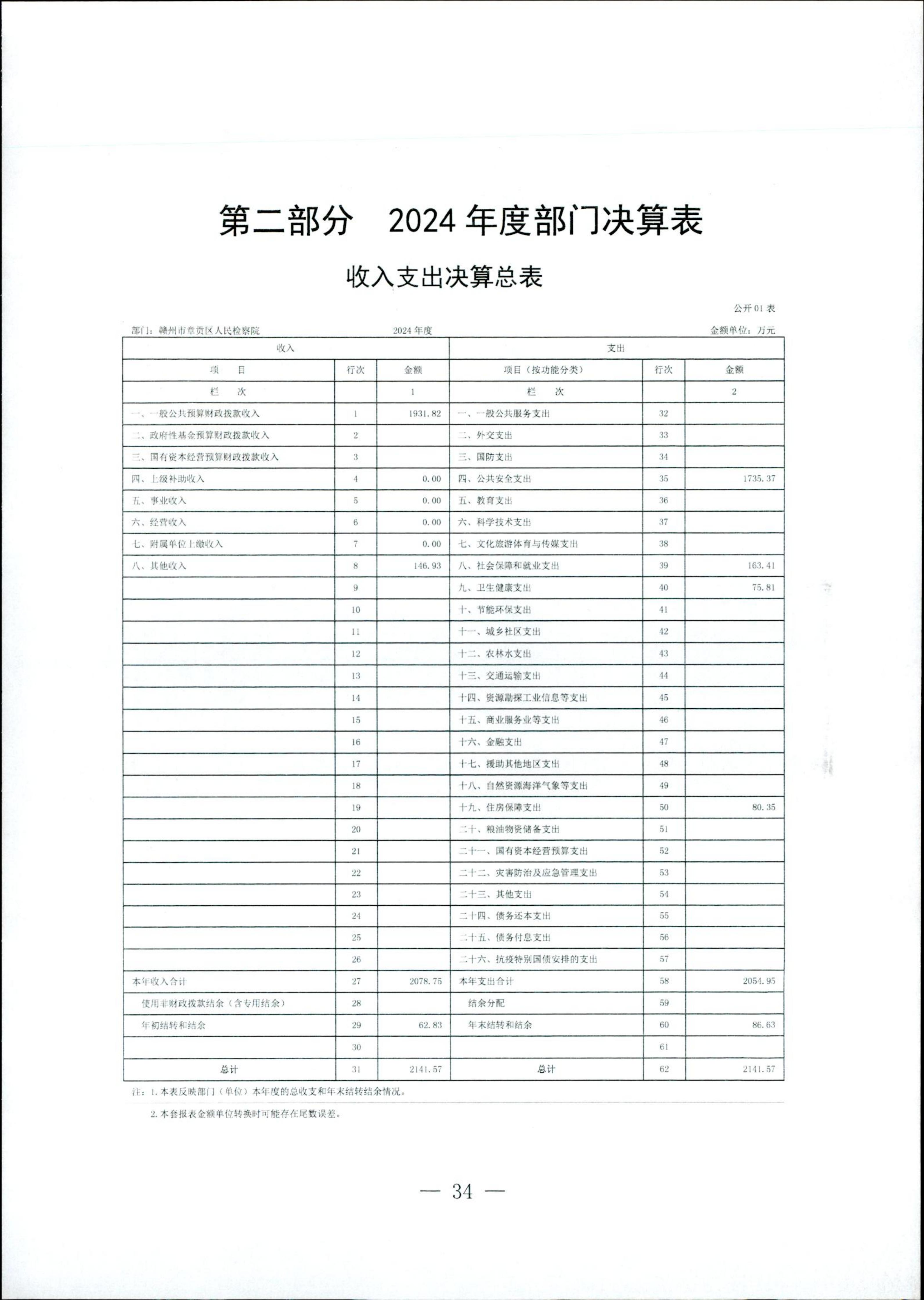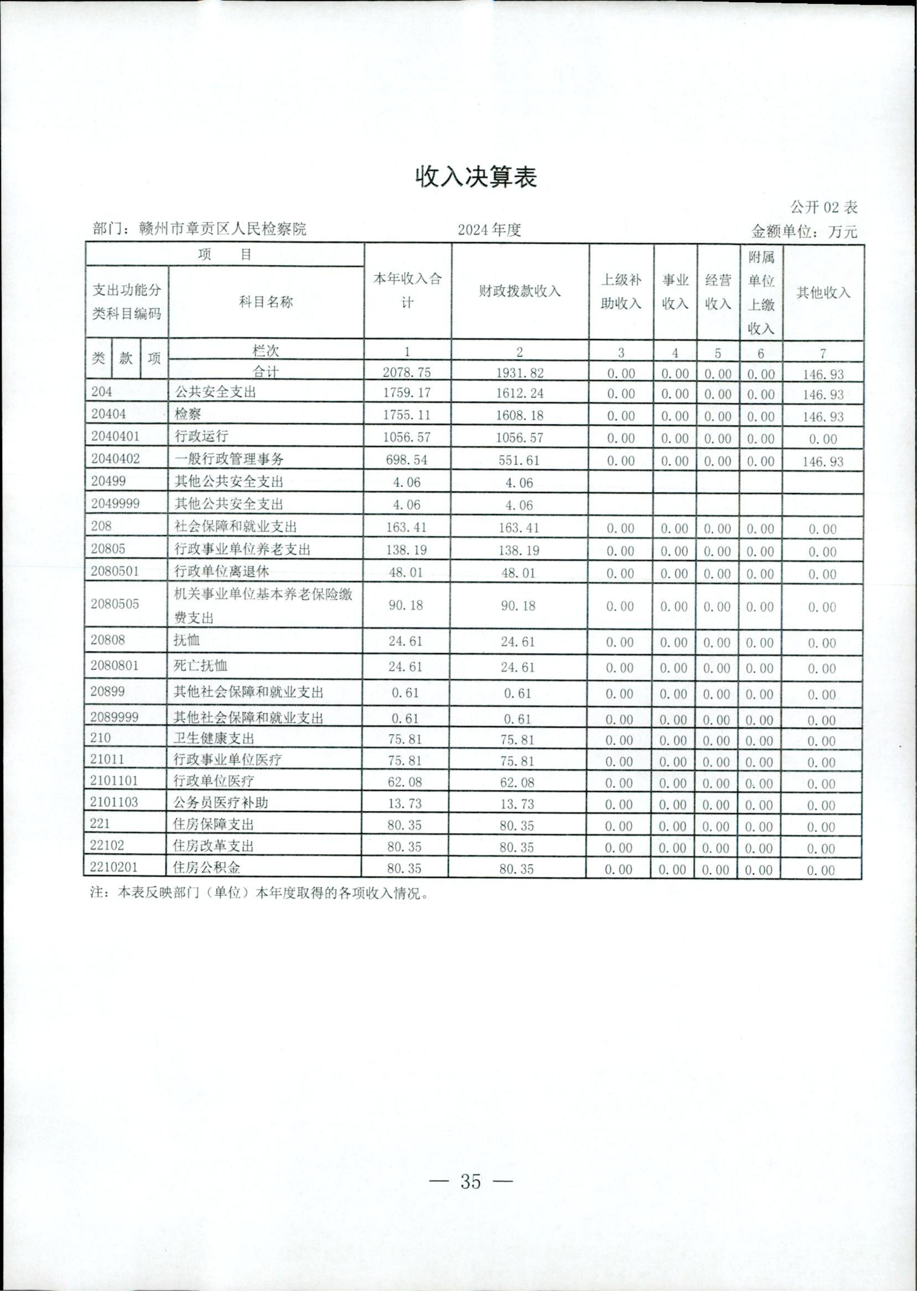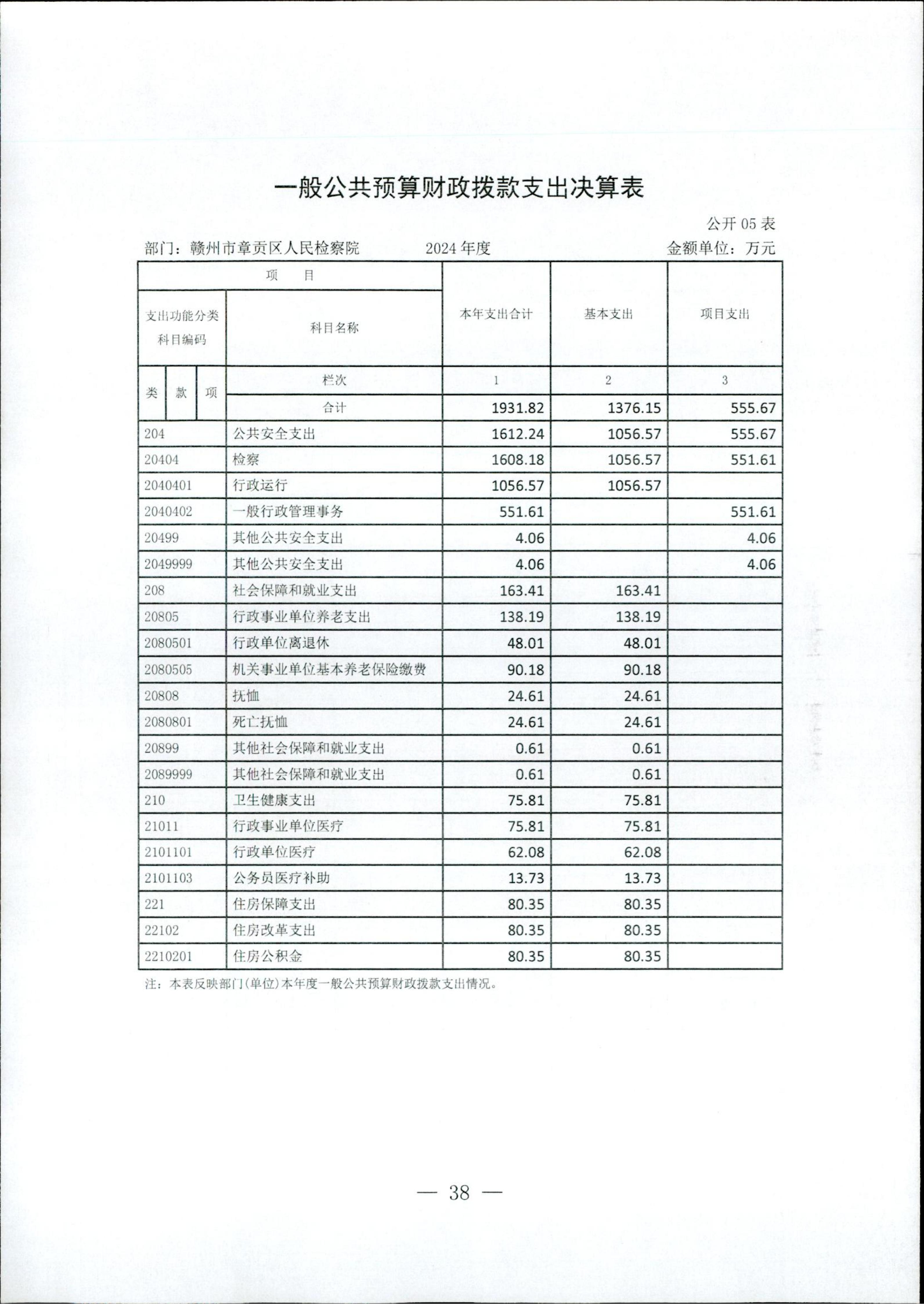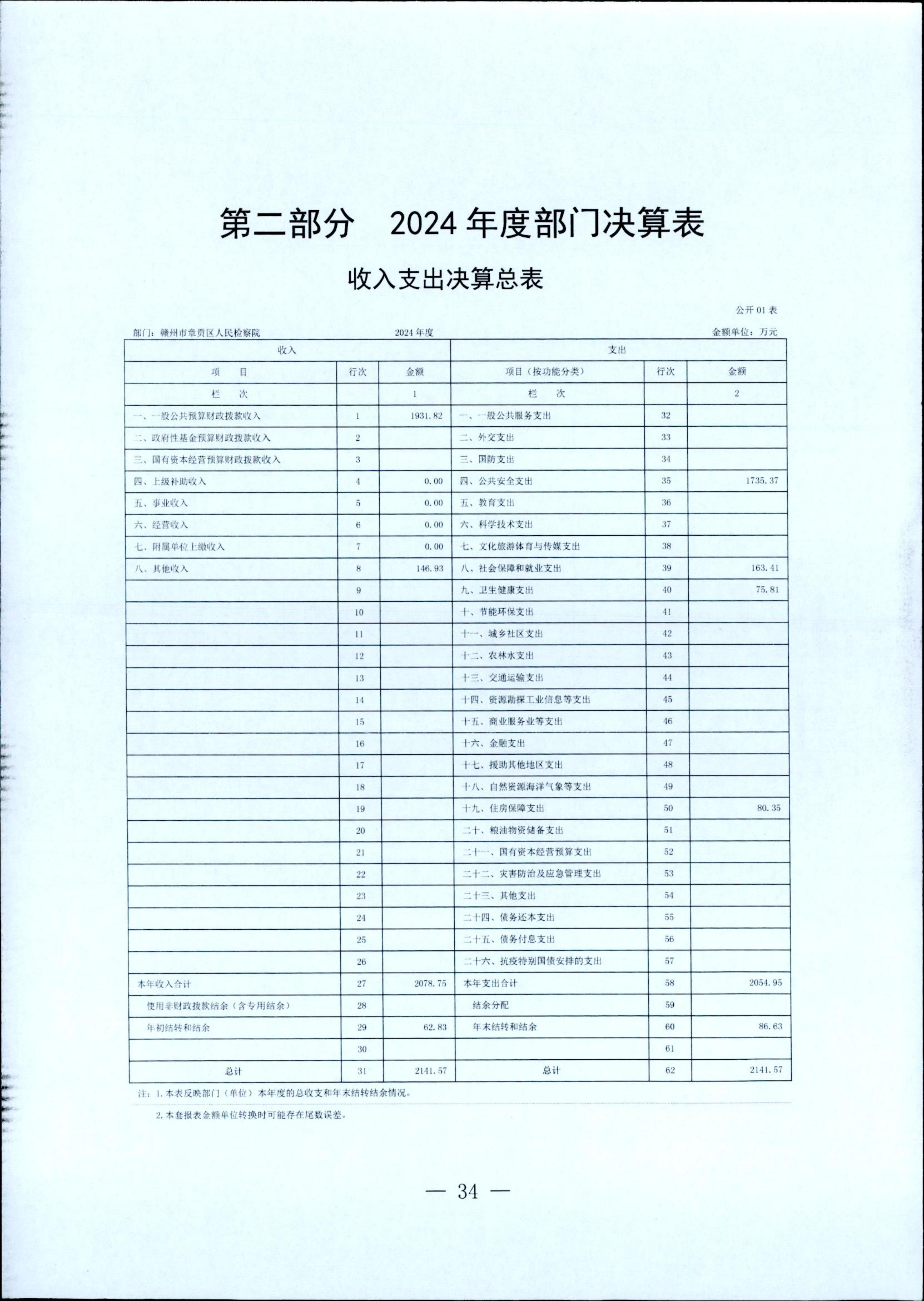 赣州市章贡区人民检察院2024年部门决算公开