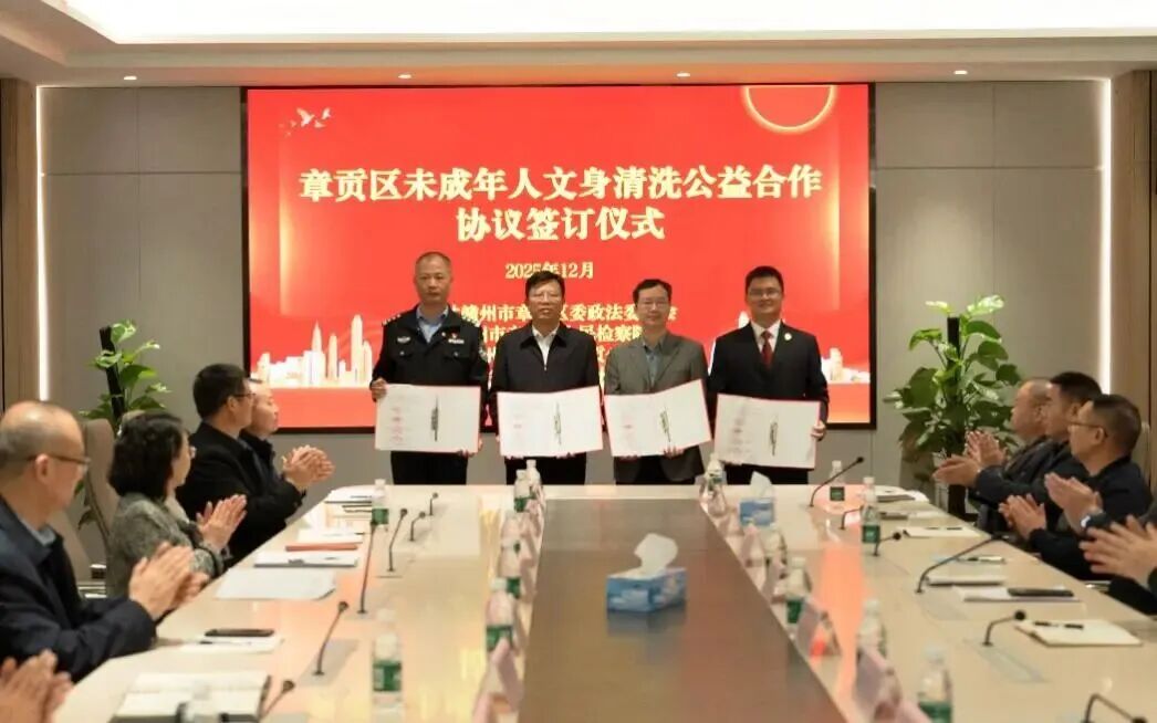 未成年人文身治理需多方协同、凝聚合力。2025年12月,章贡区检察院联合区平安办、赣州市公安局章贡分局、广东省人民医院赣州医院签署《章贡区法治护苗行动文身治理战略合作协议》,选定广东省人民医院赣州医院作为未成年人文身清洗定点单位,明确清洗流程、收费标准,搭建起多方联动的帮扶平台,推动司法保护与社会关爱形成叠加效应,为有需要的未成年人卸下“文身包袱”。
